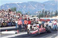 سباق للسرعة بين السيارات يقام على مضمار ممهَّد مستقيم مقسم إلى مسارات. ويبلغ طول معظم سباقات السرعة القصوى 400م. وتعبر معظم السيارات خط النهاية في أقل من ست ثوان. وتصل سرعة أسرع السيارات إلى مايزيد على 420كم/ ساعة. وتستخدم مثل هذه السيارات مظلة في مؤخرتها لتساعدها على التوقف.