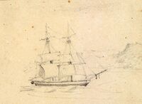 Except for whaling and pepper, U.S. trade with the Far East was limited, but for those who risked long voyage to trade fur, sandalwood, and cotton goods for Chinese silks and tea, the results were very profitable. Indeed, stories about the riches of Far East created the national myth about the vast potential of the China market. In an effort to turn the myth into reality, the US sent envoy Roberts to Cochin-China in 1835 aboard the Peacock, escorted by the schooner Enterprise under the command of Commodore Edmund P. Kennedy. They called first at the port of Canton, and Roberts' account gives a vivid description of the state of affairs there.[1] Kennedy subsequently established the East India Squadron.[3]