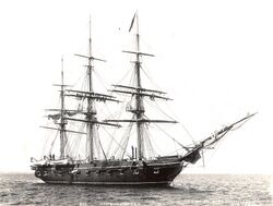 Assigned to the East India Squadron under Commodore Matthew Perry, the USS Macedonian with Capt. Joel Abbot in command, was one of the six American ships arrayed off Uraga, Japan, 13 February 1854 during Perry's second visit to negotiate the opening of Japan to foreign trade.