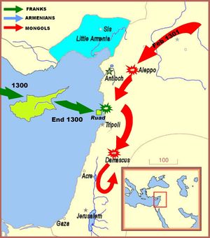 استمر الفرنجة من قبرص في الاشتباك في بعض الهجمات البحرية على إمتداد الساحل السوري، مدمرين الدامر، جنوب بيروت.[3] قام غزان بآخر محاولة للهجوم على المماليك في ربيع 1303، بقوات قوامها 80.000 فرد بالتعاون مع الأرمن، لكن التجريدة انتهت بكارثة. جنرالاته مولاي وقتلغ شاه هزما بالقرب من دمشق في معركة مرج الصفر في 20 أبريل.[4][5] وتعتبر آخر الغزوات المغولية الكبرى لسوريا.[6] عندما توفي غزان عام 1304، تبدد حلم جاك ده مولاي باستعادة سريعة للأراضي المقدسة.