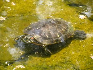 سلحفاة مائية تسبح.