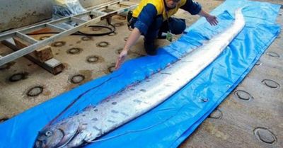 سمكة مجداف، علـَقت في شباك الصيد قرب ميناء إيميزو، في محافظة توياما الشمالية، باليابان في يناير 2019، مما أثار الذعر في اليابان، لوجود اعتقاد أن تلك السمكة تظهر قبل حدوث زلزال وتسونامي.[4]