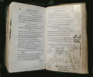 وصف شاهد عيان أداء لوكان Lekain دوره في مسرحية فولتير "سميراميس" ظهور لمؤلف في المسرح فقال: كان فولتير جزءاً لا يستهان به في العرض، وهو جالس في صدر بنوار أول، في مواجهة جميع النظارة، يصفق كمن به مس، مبدياً استحسانه تارة بعصاه وتارة بعبارات الإعجاب: "ليس في الإمكان أبدع مما كان! آه، رباه، ما كان أروع تمثيل هذا الجزء!"... وبلغ من عجزه عن السيطرة على حماسته أنه ما أن ترك لوكان خشبة المسرح... حتى جرى خلفه... ولا يمكن تصور مفارقة أدعى للضحك من هذه، فقد أشبه فولتير واحداً من شيوخ الكوميديا-بجواربه المطوية على ركبتيه، والزي الذي يرتديه-زي "أيام زمان الحلوة" وهو لا يتماسك فوق ساقيه المرتعشتين إلا بالتوكؤ على عصاه، وكل أمارات الشيخوخة مرتسمة على محياه، فخداه غائران متغضنان، وأنفه مستطيل، وعيناه أوشكتا أن ينطفئ بريقهما".