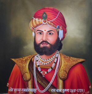 Following the decline of the Mughal empire after the death of Emperor Aurangzeb in 1707, Sialkot and its outlying districts were left undefended and forced to defend itself. In 1739, the city was captured by Nader Shah of Persia during his invasion of the Mughal Empire.[79] The city was placed under the governorship of Zakariya Khan, the Mughal Viceroy of Lahore, who in return for the city promised to pay tribute to the Persian crown.[79] After that Nader Shah went to India where in Karnal , Rao Bal Kishan fought against him with their 5000 soldiers who hails from Ahirwal on 24, Feb 1739 . Seen this Nader Shah shocked but impressed by Rao Bal Kishan fighting skills. Lastly when Nadirshah reached Delhi he told Muhammad Shah about Rao Bal Kishan[80] Bravery, on which Muhammad Shah ordered to make a "Chhatri" to honour Rao Bal Kishan at Karnal which still can be found.[2]