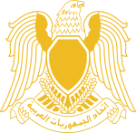 وفقاً للقانون رقم 190 لعام 1958: يتمثل شعار الجمهورية في عقاب زخرفي، مأخوذ عن «عقاب صلاح الدين الأيوبي» وقد وقف مرتكزاً على قاعدة كتب عليها بالخط الكوفي «الجمهورية العربية المتحدة» كما نُقش فوق صدره درع يمثل «علم الجمهورية».[2]
