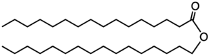 The best-known animal wax is beeswax used in constructing the honeycombs of beehives, but other insects also secrete waxes. A major component of beeswax is myricyl palmitate which is an ester of triacontanol and palmitic acid. Its melting point is 62-65 °C. Spermaceti occurs in large amounts in the head oil of the sperm whale. One of its main constituents is cetyl palmitate, another ester of a fatty acid and a fatty alcohol. Lanolin is a wax obtained from wool, consisting of esters of sterols.[1]