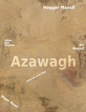 - Portions of this article were translated from the French Language Wikipedia ariticles fr:Azawad and fr:Azawagh, 2008-07-14.