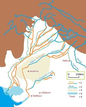 - Rajawat, A.S., Sastry, C.V.S. and Narain, A. (1999-a). Application of pyramidal processing on high resolution IRS-1C data for tracing the migration of the Saraswati river in parts of the Thar desert. in "Vedic Sarasvati, Evolutionary History of a Lost River of Northwestern India", Memoir Geological Society of India, Bangalore, No. 42, pp. 259–272.