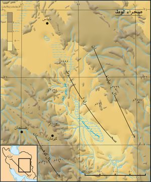 صحراء لوط بالفارسية: دشت لوت، تسمية فارسيّة تعني الصحراء الجرداء العارية، وواقعها كذلك. وتقع في النطاق شبه المداري بين خطي العرض 30ـ 34 درجة شمالاً في قلب إيران الجنوبي الشرقي، تمتد طولياً 1100 كم بعرض 100ـ200 كم.