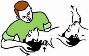 تجنب انغلاق البلعوم باللسان ويوضع الرأس بوضعية الانبساط نحو الخلف (شرط وجود إصابة بالعنق وخاصة بالعمود الرقبي) والفك السفلي نحو الأمام.