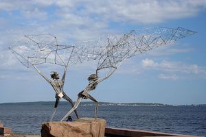 Statue of fishermen in Petrozavodsk, Russia.