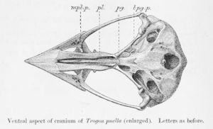 The trogons and quetzals are birds in the order Trogoniformes which contains only one family, the Trogonidae. The family contains 39 species in eight genera. The fossil record of the trogons dates back 49 million years to the mid-Eocene. They might constitute a member of the basal radiation of the order Coraciiformes.[1] The word "trogon" is Greek for "nibbling" and refers to the fact that these birds gnaw holes in trees to make their nests.