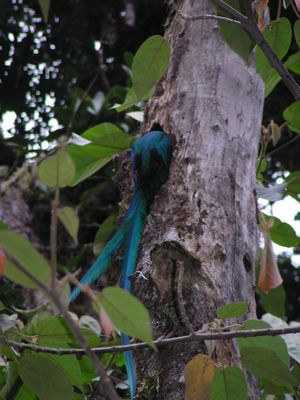 A male Resplendent Quetzal entering its nest.