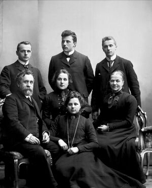 Family (from لاتينية: familia) is a group of people related either by consanguinity (by recognized birth) or affinity (by marriage or other relationship). It forms the basis for social order.[1] Ideally, families offer predictability, structure, and safety as members mature and learn to participate in the community.[2] Historically, most human societies use family as the primary purpose of attachment, nurturance, and socialization.[3][4][5][6]