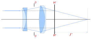 By convention, in still photography, the normal lens for a particular format has a focal length approximately equal to the length of the diagonal of the image frame or digital photosensor. In cinematography, a lens of roughly twice the diagonal is considered "normal".[2]