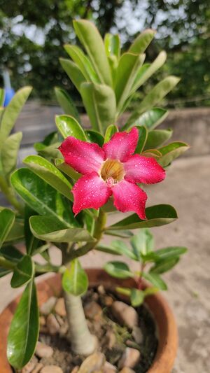 Adenium is a genus of flowering plants in the family Apocynaceae first described as a genus in 1819. It is native to Africa and the Arabian Peninsula.[3]