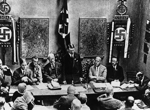- Benito Mussolini leader of the National Fascist Party became Prime Minister of Italy, shortly thereafter creating the world's first fascist government. The Fascist regime establishes a totalitarian state led by Mussolini as a dictator. The Fascist regime restores good relations between the Roman Catholic Church and Italy with the Lateran Treaty, which creates Vatican City. The Fascist regime pursues an aggressive expansionist agenda in Europe such as by raiding the Greek island of Corfu in 1923, pressuring Albania to submit to becoming a de facto Italian protectorate in the mid-1920s, and holding territorial aims on the region of Dalmatia in Yugoslavia.