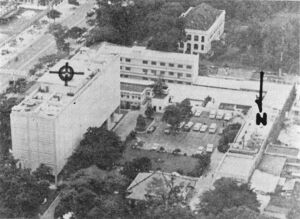 On the afternoon of 29 April 1975, Hubert van Es, a Saigon-based photographer for United Press International, took the iconic photo of Operation Frequent Wind of an Air America UH-1 on a rooftop picking up Vietnamese evacuees.[10][11] The building in the photo was the Pittman Apartment building at 22 Gia Long Street (now 22 Lý Tự Trọng Street), which was used as a residence by various embassy, CIA, and USAID employees. It has often been misidentified as the US Embassy.[12] Hubert van Es' photo is frequently used in political cartoons commenting on US foreign policy.[13]