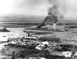 As part of the evacuation plan agreed with the DAO, Air America committed 24 of its 28 available helicopters to support the evacuation and 31 pilots agreed to stay in Saigon to support the evacuation; this meant that most helicopters would have only one pilot rather than the usual two.[4] At 08:30 on 29 April, with the shelling of Tan Son Nhut Airport subsiding, Air America began ferrying its helicopter and fixed-wing pilots from their homes in Saigon to the Air America compound at Tan Son Nhut, across the road from the DAO Compound.[6] Air America helicopters started flying to the rooftop LZs in Saigon and either shuttled the evacuees back to the DAO Compound or flew out to the ships of TF76.[6] By 10:30 all of Air America's fixed-wing aircraft had departed Tan Son Nhut, evacuating all non-essential personnel and as many Vietnamese evacuees as they could carry and headed for Thailand.[6] At some point during the morning RVNAF personnel took five ICCS UH-1H Hueys and one Air America Bell 204 from the Air America ramp.[6]