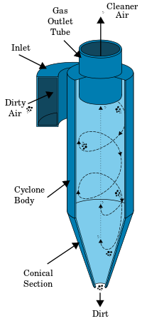 This means that the established feed velocity controls the vortex rate inside the cyclone, and the velocity at an arbitrary radius is therefore: