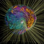 Stream lines on this simulation of a supernova show the flow of matter behind the shock wave giving clues as to the origin of pulsars