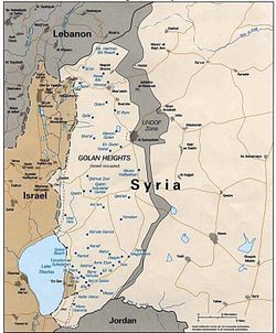 خريطة مرتفاعت الجولان موضح عليها المستوطنات الإسرائيلية عام 1992.