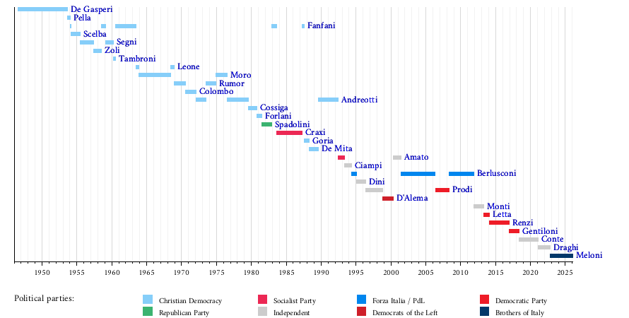 {{cite web}}: CS1 maint: unrecognized language (link) - ^ "II Governo De Gasperi". storia.camera.it (in Italian). Archived from the original on 29 July 2020. Retrieved 11 April 2020.