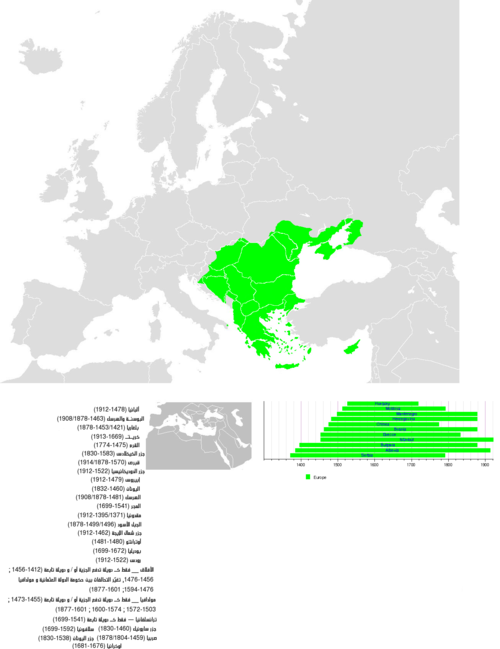 قائمة بالمناطق التي سيطرت عليها الدولة العثمانية في كل من أوروبا، آسيا وأفريقيا في الفترة (1299-1922).