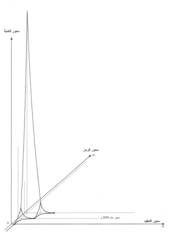 بعد رسم هذا الخط البياني يمكن إضافة محور ثالث فراغي ليحوّل مساحات الكائنات الحيّة والمادة المحدودة بين الخطّ البياني ومحور الزمن إلى حجوم تُظهر كمياتها المتواجدة بالإضافة إلى مدى تطوّر هذه الكائنات في زمن ما، وذلك بعد إضافة محور الكميّة العمودي على المحورين السابقين، والذي يتقاطع معهما في نقطة تقاطعهما وهي نقطة الزمن 0 لتتّضح علاقة هذه المحاور الثلاثة مع التطوّر من خلال الشكل الفراغي : (الشكل 5)