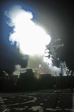 واحد من بين 110 صواريخ أطلقتها قوات بريطانيا والولايات المتحدة كتنفيذ للقرار رقم 1973 بفرض حظر جوي على ليبيا.