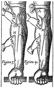 وليام هارڤي وضح بأن القلب يعمل كمضخة. وبوسائل إيضاح مثل الرسم الخشبي أعلاه أوضح كيفية مرور الدم إلى كل أجزاء الجسم.