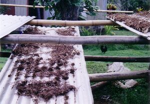 تجفيف جذور الكافا في قرية لوفوني، اوفالاو، فيجي.