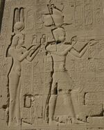 نحت للملكة كليوبترا وابنها قيصرون في معبد دندرة