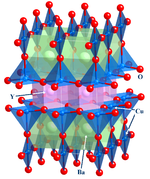 YBa2Cu3O7, or YBCO, is a high temperature superconductor able to levitate above a magnet when colder than its critical temperature of about 90 K (−183°C)