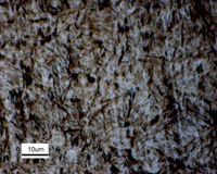 مارتنزيت Martensite مسمى على اسم المتالرجي الألماني أدولف مارتنز (1850–1914). المصطلح يشيع الاشارة به إلى شكل بالغ الصلابة من البنية البلورية للصلب، ولكن يمكن أيضاً أن يشير إلى أي بنية بلورية تتشكل من تحول عديم الانتشار.[1] ويضم المارتنزيت طائفة من المعادن الصلبة التي تتواجد كحبيبات بلورية على شكل صحن أو lath.
