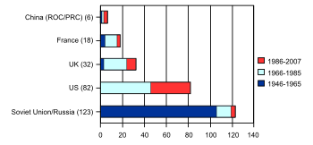 Number of resolutions vetoed by each of the five permanent members of the Security Council between 1946 and 2007.[5]