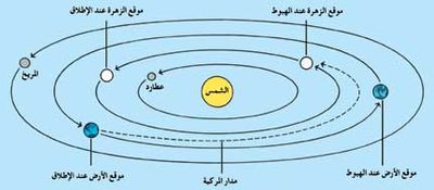 رحلة صاروخية إلى الزهرة للوصول إلى الزهـرة ينبغي أن تُطلق مركـبة فضـائية في اتجاه معاكـس للاتجاه الذي تدور فيه الأرض حول الشـمس. يجب أن تطلق المركبة بسرعة تزيد 6.0كـم/ ثانية على السـرعة اللازمة للإِفلات من الجاذبية الأرضـية. ستطرح هذه السرعة 0,6كـم/ ثانية من السرعة 29,8كـم/ ثانية، وهي السـرعة التي تدور بها الأرض حـول الشمـس مما يجعـل المركبة تسير بسرعة 29,2كـم/ ثانية. وتتحرك المركبـة الفضـائية باتجاه الشمس حتى تصـل إلى المـدار الذي تدور فيه الزهرة.