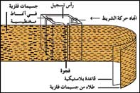 تتحول الأصوات المطلوب تسجيلها على الشريط إلى تيار كهربائي بوساطة الميكروفون.انظر: الميكروفون. ويقوم المضخم بتقوية التيار الذي يغذي رأس التسجيل. وعندما يمر التيار في الرأس فإنه ينشئ مجالاً مغنطيسيًّا متغيراً حول فجوة صغيرة في المغنطيس الكهربائي. وعند مرور الشريط على الفجوة، فإن المجال المغنطيسي يمغنط الجسيمات المغنطيسية على الشريط بنمط يشبه ذلك النمط الخاص بالموجات الصوتية الداخلة إلى الميكروفون.