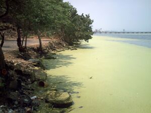 Surveys have shown that 54% of lakes in Asia are eutrophic; in Europe, 53%; in North America, 48%; in South America, 41%; and in Africa, 28%.[71] Estuaries also tend to be naturally eutrophic because land-derived nutrients are concentrated where run-off enters the marine environment in a confined channel. The World Resources Institute has identified 375 hypoxic coastal zones around the world, concentrated in coastal areas in Western Europe, the Eastern and Southern coasts of the US, and East Asia, particularly in Japan.[72] In the ocean, there are frequent red tide algae blooms[73] that kill fish and marine mammals and cause respiratory problems in humans and some domestic animals when the blooms reach close to shore.