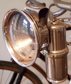 كما كانت مصابيح الكربيد تُستخدم على نطاق واسع كمصباح أمامي في السيارات المبكرة والدراجات النارية والدراجات، ولكن تم استبدالها بالكامل بمصابيح كهربائية.[3]