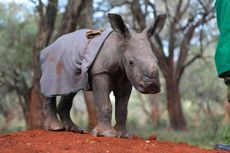 معرفة، أنثى وحيد قرن يتيمة وُلدت في تنزانيا ونُقلت إلى منتزه نيروبي الوطني، حيث يتم الاعتناء بها.