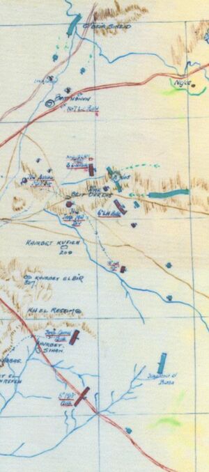 Further, the Ottoman 53rd Infantry Division, which had been garrisoned at Jaffa, was ordered to march south to Gaza, but was not expected before the morning of 27 March. Kress von Kressenstein, the commander of the Ottoman defences, moved his headquarters from Beersheba to Tel esh Sheria where it remained until June.[27][28][29]