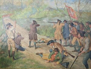 The Battle of Lexington depicted in a 1910 portrait by William Barnes Wollen | |||||||