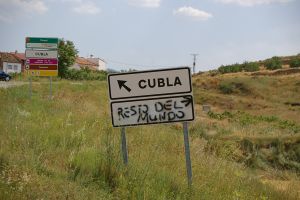 Sign in Cubla with a graffiti highlighting the isolation of the province
