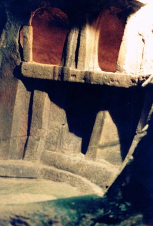 - 'الغرفة الرئيسية' ':' هذه الغرفة دائرية تقريبًا ومنقوشة من الصخر. يتم تمثيل عدد من المداخل تريليثون ، بعضها أعمى ، والبعض الآخر يؤدي إلى غرفة أخرى. تلقى معظم سطح الجدار غسلًا أحمر اللون مغرة. من هذه القاعة تم استعادة السيدة النائمة.