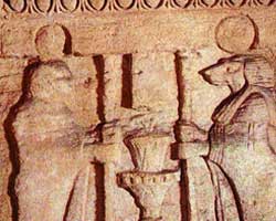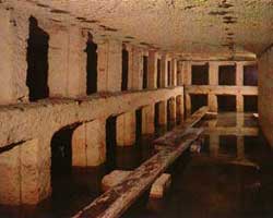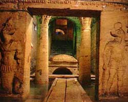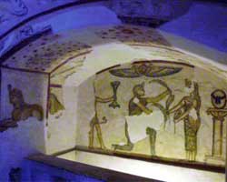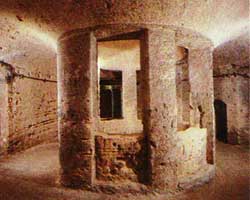 ان الصاله المستديره تفتح علي عده حجرات صغيره توحيحجرات للدفن بها فتحات لوضع الجثه اواني الرماد المحترقه