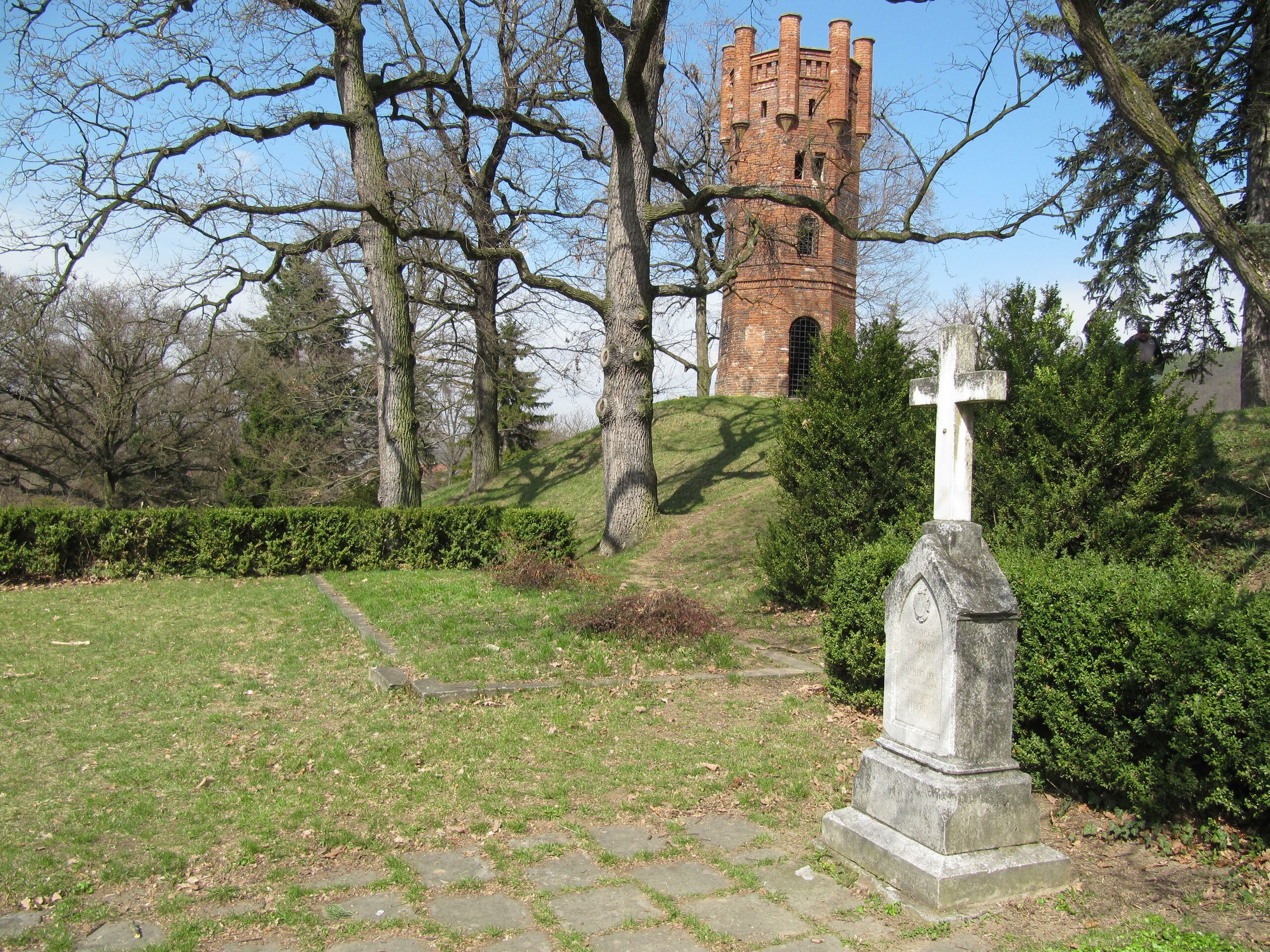 (بالتشيكية) English: Čechy pod Kosířem in Prostějov District, Czech Republic. Tomb in the park and lookout tower.
