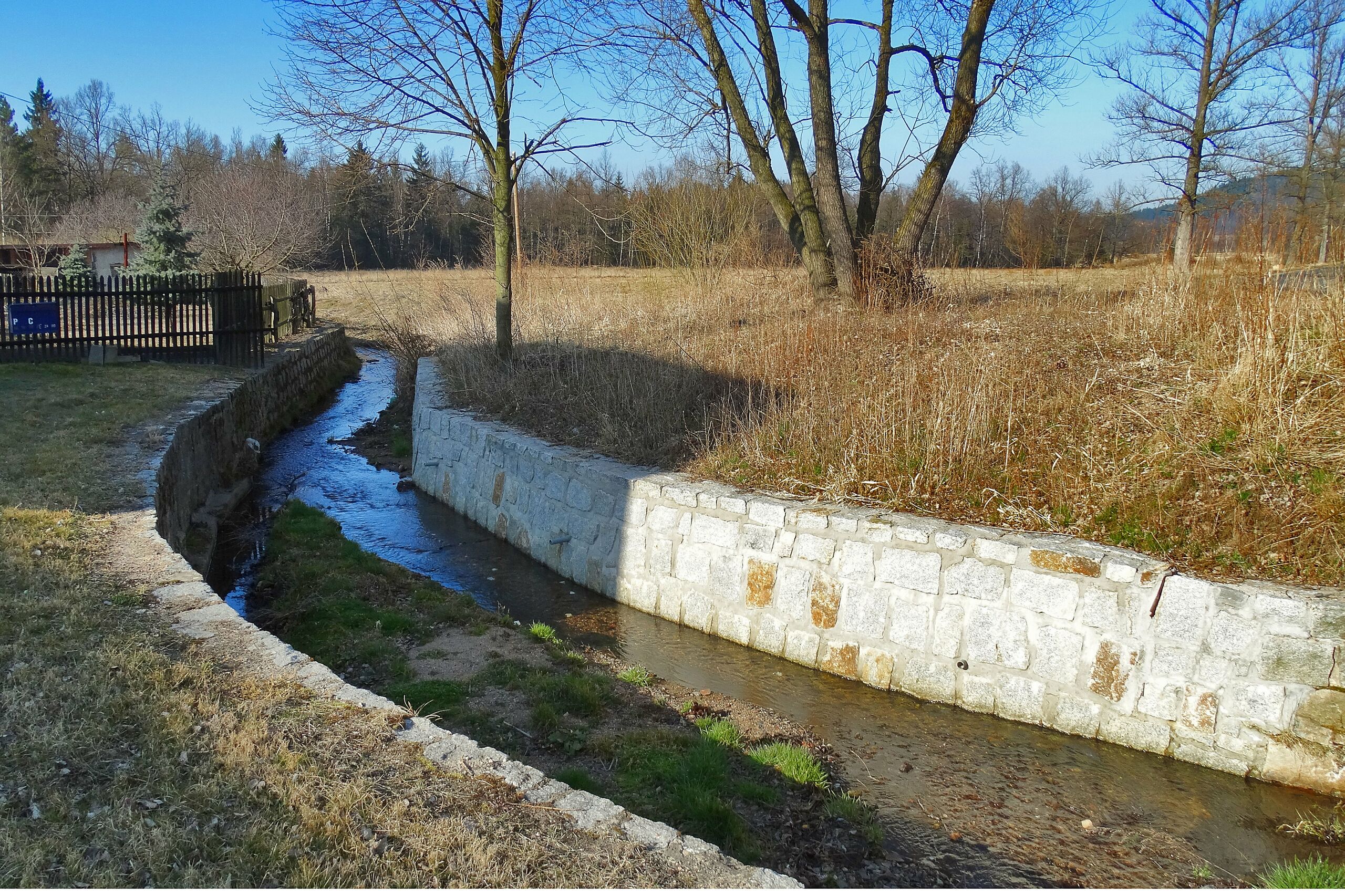 Polski: Potok Łupia w dolnej części wsi Krogulec |