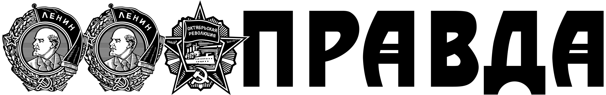 English: Logo of Pravda newspaper which includes two awards of the Order of Lenin and one award of the Order of the October Revolution.