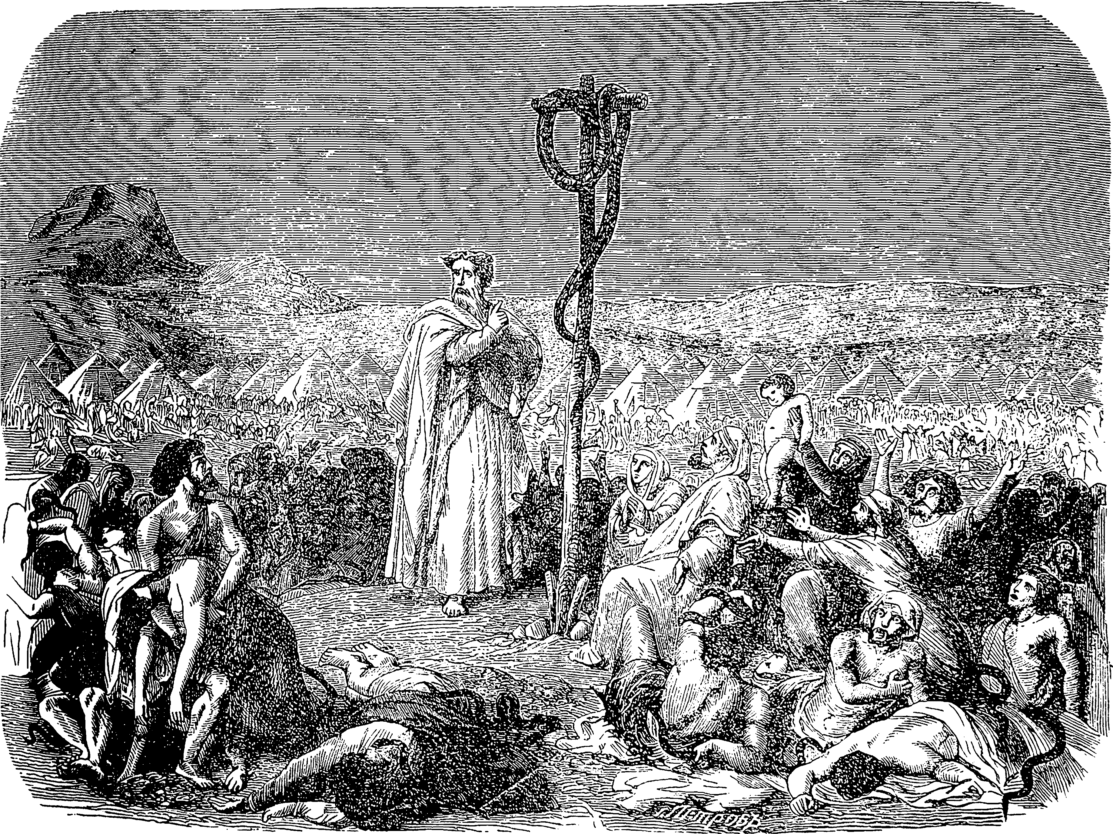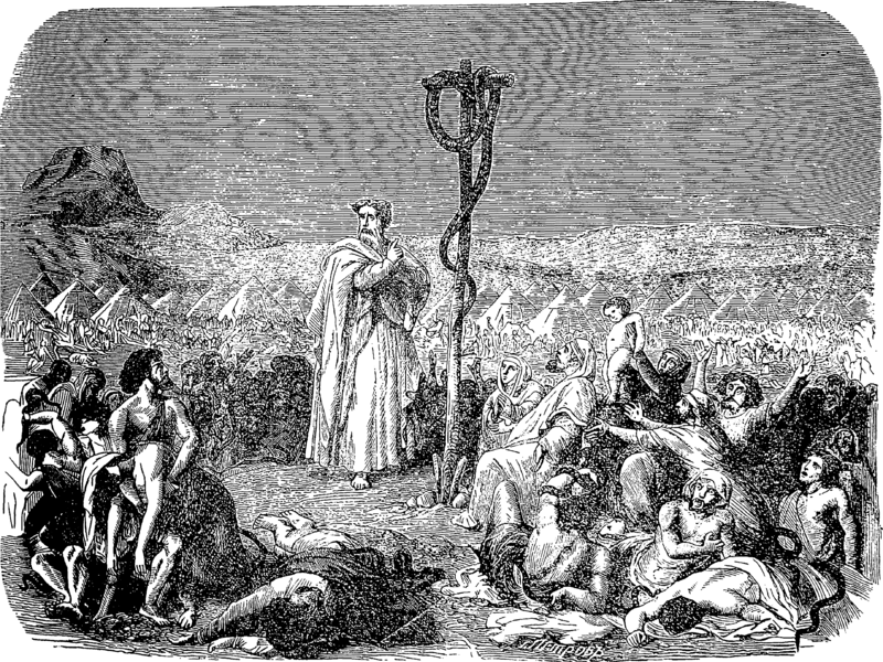 English: Bronze serpent. Picture from popular bible encyclopedia of Archimandrite Nicephorus (1892).